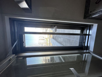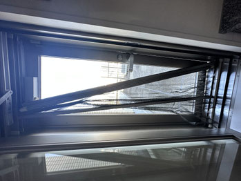 横引き収納網戸修理交換(プリーツ 横引きロール ロールアップ)